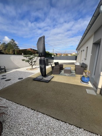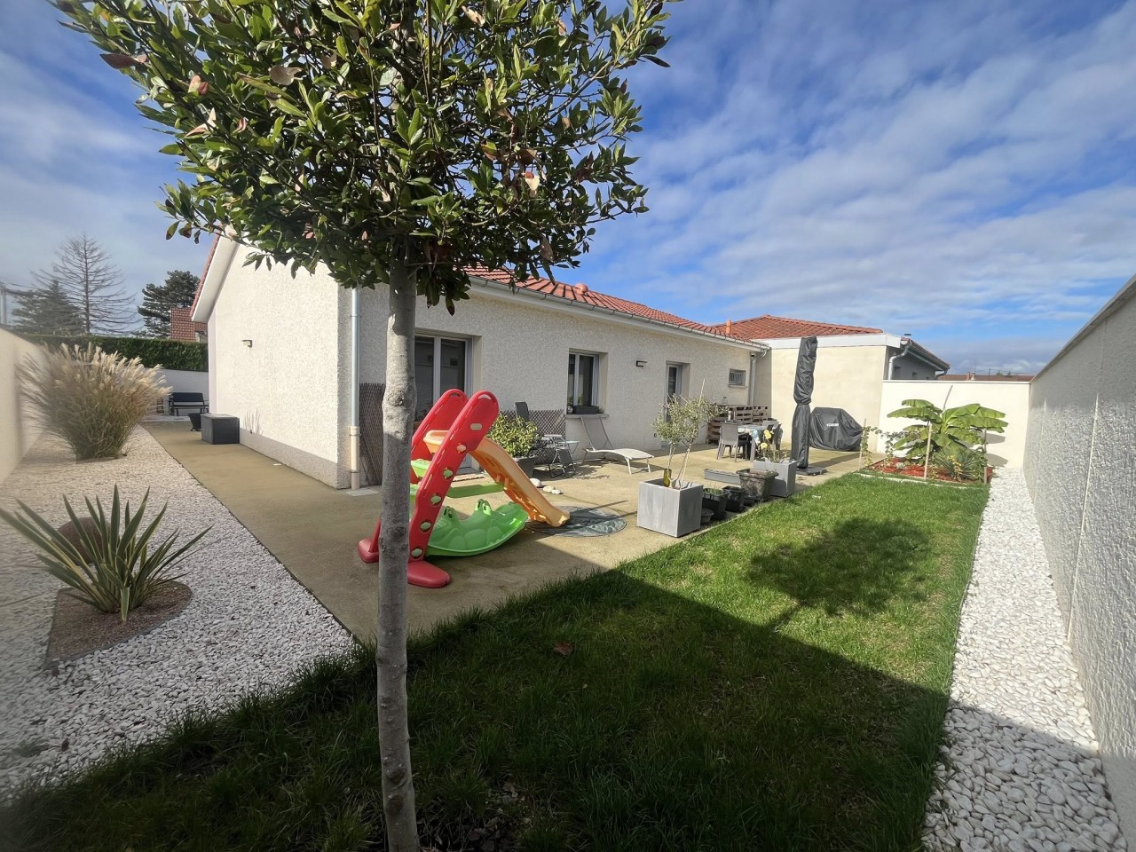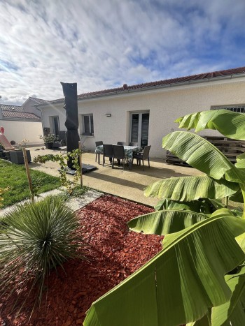 en exclusivité à Loyettes ! Découvrez cette charmante maison de plain-pied, construite en 2021, prête à vous accueillir sans travaux ! Elle se compose d’une belle pièce de vie lumineuse avec cuisine ouverte sur salon-séjour, de trois chambres, d’une buanderie et d’un garage. Vous apprécierez le confort moderne : • Volets roulants électriques avec domotique intégrée, • Portail motorisé avec interphone et commande à distance depuis votre téléphone, • Chauffage par climatisation réversible et radiateurs électriques, • Chauffe-eau thermodynamique pour une meilleure performance énergétique. Le tout sur un terrain clos et arboré de 378 m², soigneusement aménagé (plantations, terrasse, enrobé…) et doté d’un abri de jardin. 📍 Taxe foncière : 645 €/an 💰 Prix : 339 000 € Une belle opportunité à ne pas manquer ! Montant estimé des dépenses annuelles d'énergie pour un usage standard est de 1100 euros par an Prix des énergies indexés sur l'année 2015 Les informations sur les risques auxquels ce bien est exposé sont disponibles sur le site Géorisques: www.georisques.gouv.fr AGENCE A FRAIS REDUITS HONORAIRES CHARGE DES VENDEURS Contact: SANTOS DA SILVA Tiphanie R.S.A.C/ 849637160 tiphaniedasilva@atout-immo01.fr 06.89.93.36.71 ATOUT IMMO SAINT VULBASInformations
