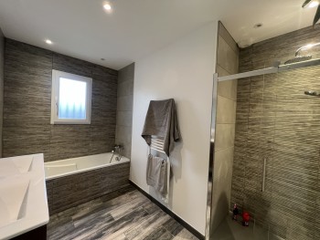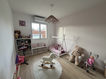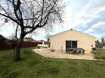 A 15 mn de la gare de MEXIMIEUX, 5 mn de la PLAINE DE L AIN Dans un village dynamique avec commerces et écoles MAISON INDIVIDUELLE charmante construite en 2018 de PLAIN PIED avec 88 m² sur un terrain plat arboré et clôturé de 804 m². Elle est composée de : séjour avec CUSISINE EQUIPEE avec buanderie/chaufferie , couloir qui desserre 3 chambres, une salle de bains avec douche et baignoire, wc, Maison très ECONOME : DPE B grâce à 2 modes de chauffage performants : Poêle à granules + Pompe à chaleur A/A et l'investissement en panneaux solaires récemment. Les huisseries sont soit en PVC soit en ALU double vitrage avec volets roulants Garage de 20 m² avec mezzanine SES ATOUTS : ECONOMIE ENERGIE +++ SECTEUR CALME MAISON RECENTE ATOUT IMMO - Valérie DELEAGE 06 61 79 76 64Informations